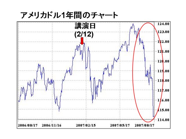 サブプライムローン問題によって円キャリー・トレードの巻き戻しがおこり急激な円高が起こっていますが、ジム・ロジャーズは何らかのきっかけでこうした急激な円高が起こること予測していたようです。