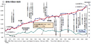 1970年以降の世界の穀物の需要量、生産量、期末在庫率の推移(PDF)